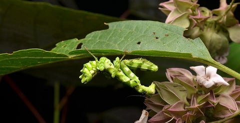Theopropus elegans is a species with weak force value among mantis, so it can only rely on "deceiving and abducting" to make the enemy retreat without fighting. When faced with danger, they will "hold their heads up", hold up a pair of catching feet, and reveal the huge arc markings in their front wings. At this time, the smaller and weaker natural enemies see the arc markings, think they have met a huge object and run away. If the opponent is too strong to be scared, Theopropus eleganshas another way, that is to run away.